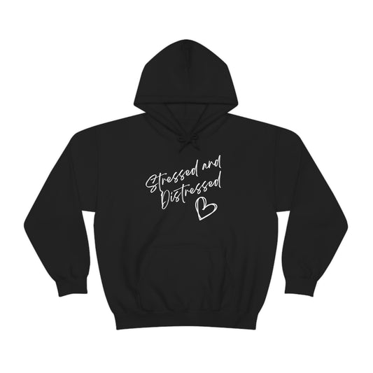 Stressed and Distressed Hooded Sweatshirt (Dark Colors)